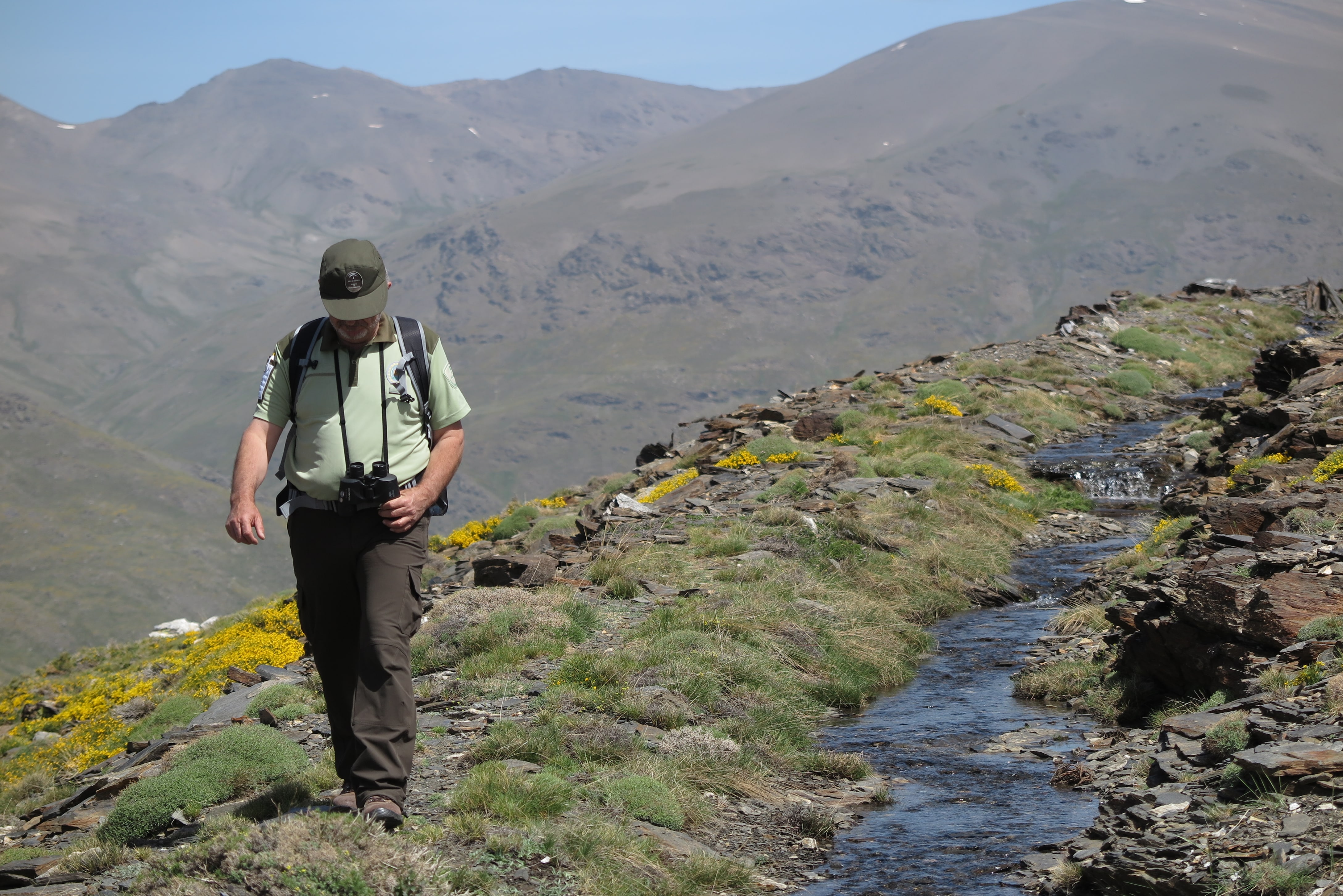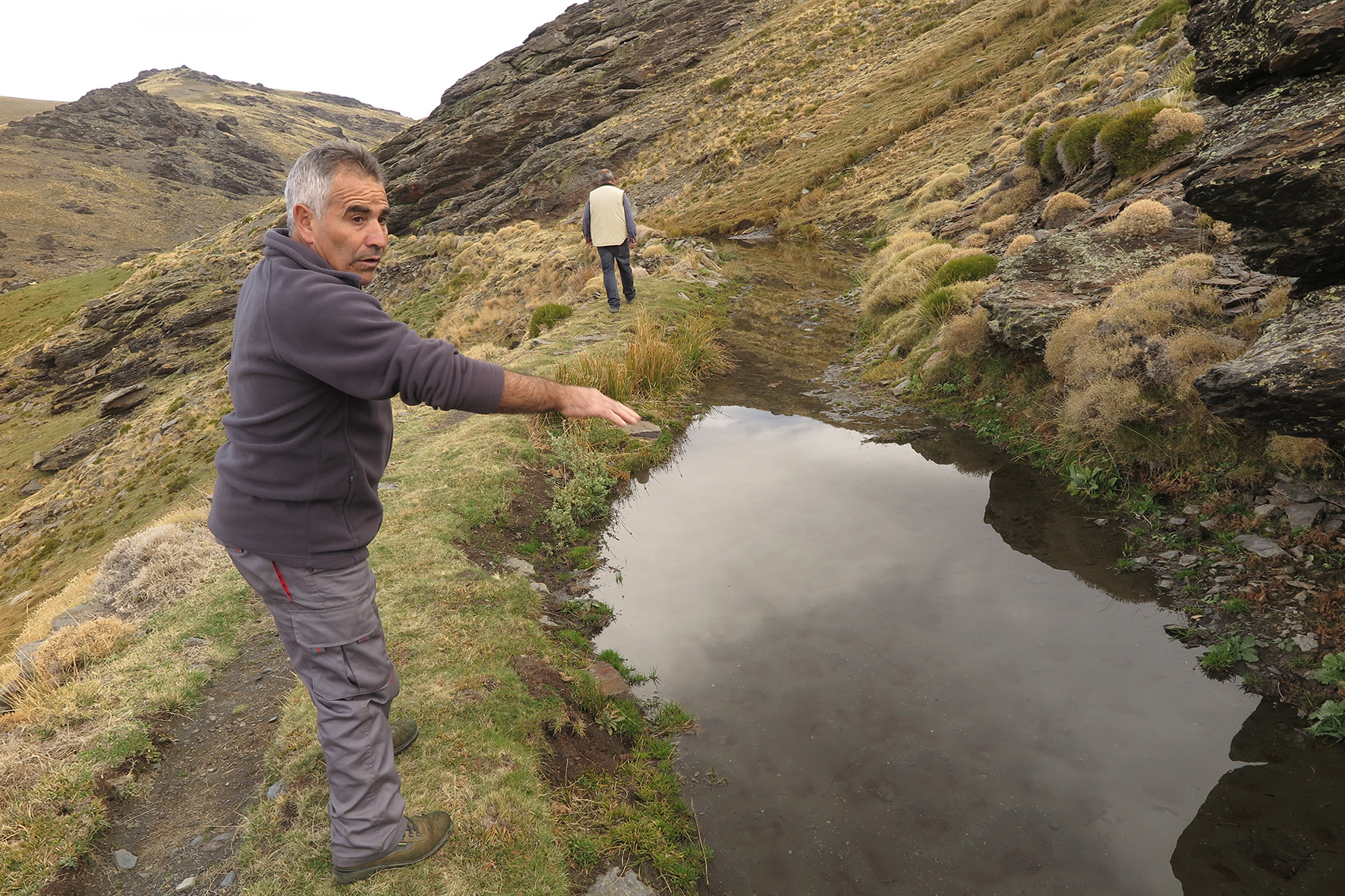 Manuel Peregrina (Agente de Medio Ambiente) transita junto a la acequia de Bérchules en una jornada de campo para el diseño de la acción C5.